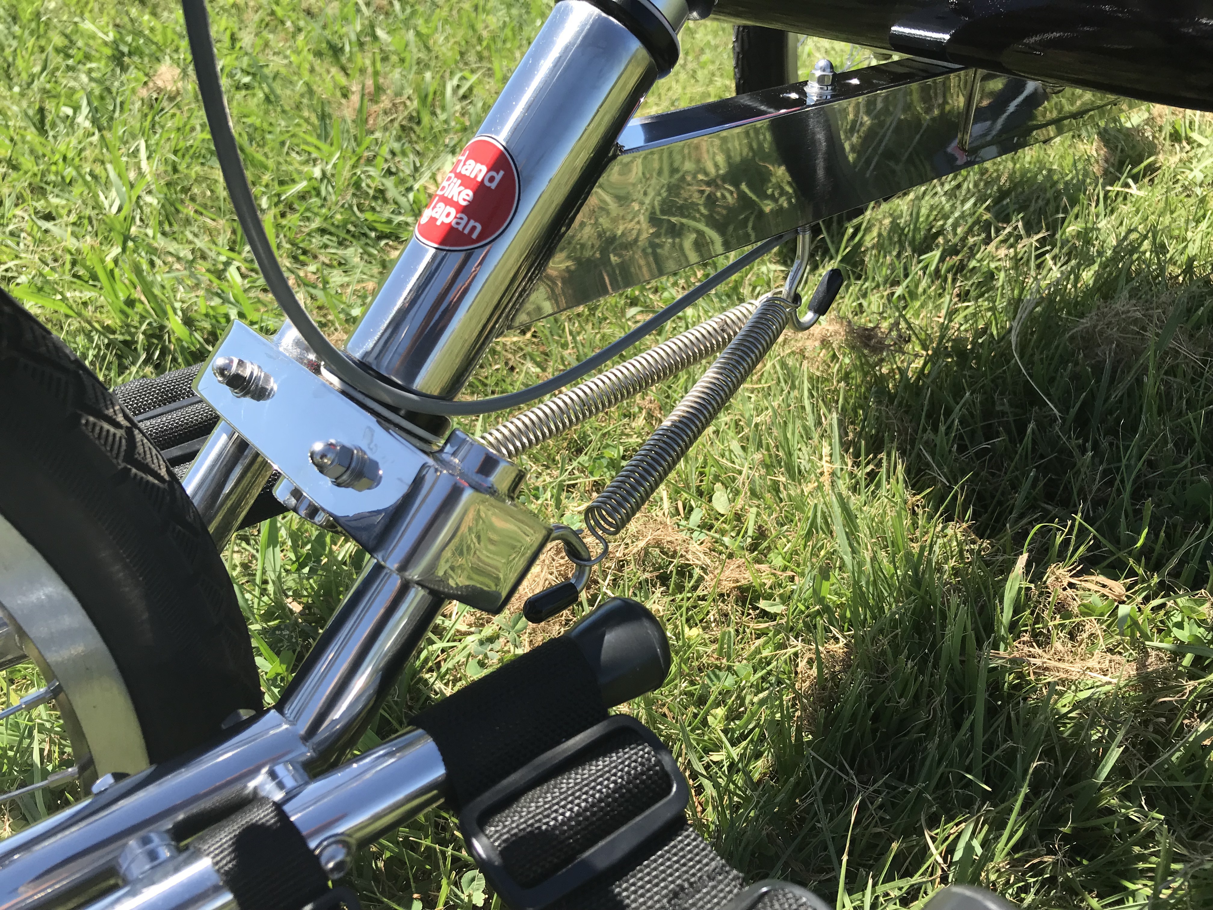 HBJ-YC用に新規開発したスプリングダンパーで、ハンドルを離しても常に前輪は前を向いてます。
