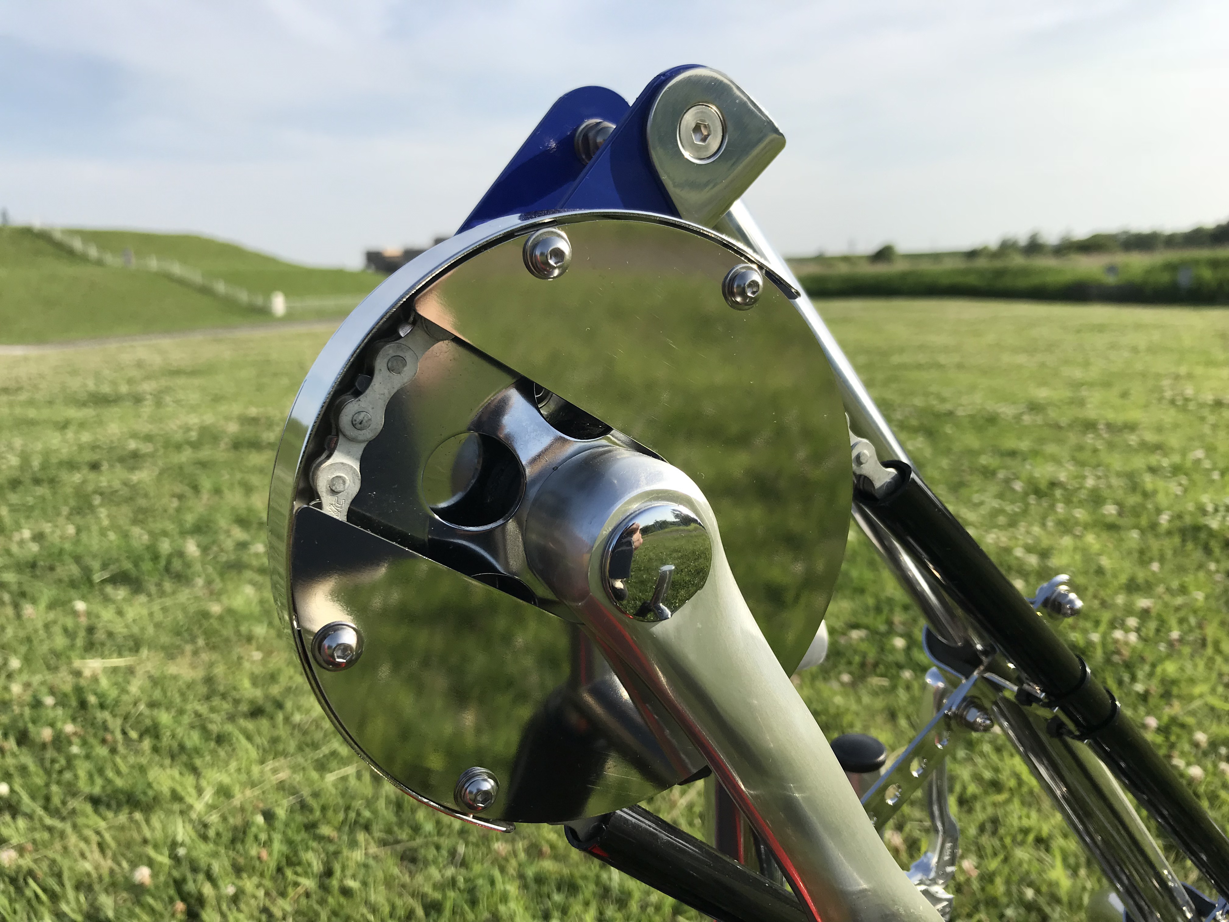 チェーンで手が汚れないように、クランクカバーも取り付ける事が出来ます。